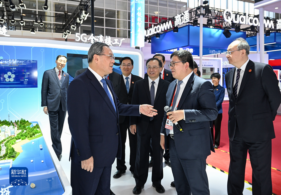 11月28日,国务院总理李强在北京出席首届中国国际供应链促进博览会开幕式暨全球供应链创新发展论坛,并发表主旨演讲。这是开幕式前,李强到链博会展馆巡馆并与有关企业负责人互动交流。新华社记者 饶爱民 摄