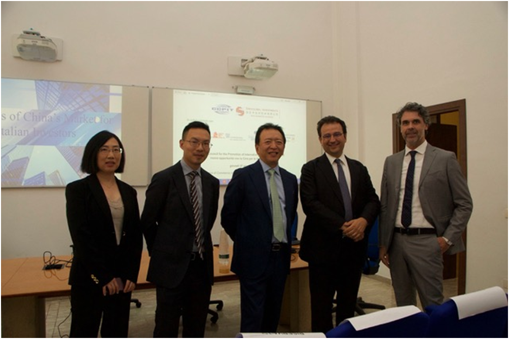 驻意大利代表处总代表姚鲁杰、巴里商会主席卢恰娜•迪•比谢列、巴里东方博览会主席加埃塔诺•弗鲁利、巴里工业家联合会副主席弗朗切斯科•迪韦拉、意大利东方商会主席安东尼奥•巴里莱、意大利对外合作协会副主席马尔科•德•费奥、信安中全球投资有限公司总裁詹保罗•卡马乔及巴里商协会代表、相关企业负责人近40人出席本次活动。