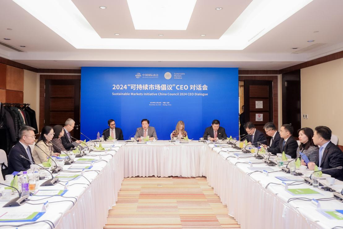 11月26日下午,在第二届中国国际供应链促进博览会期间,“可持续市场倡议”CEO对话会暨中国理事会工作组成立仪式与成果发布活动成功举办。 副会长、中国国际商会副会长于健龙,“可持续市场倡议”全球理事会首席执行官费洁姣,英国驻华贸易副使节、公使衔参赞路睿出席活动并致辞。“可持续市场倡议”中国理事会理事单位及合作伙伴负责人围绕“携手绿色发展,实现互利共赢”主题进行深入交流。