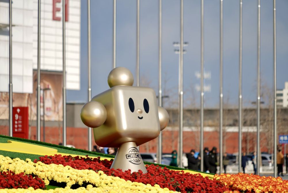 这是11月26日在中国国际展览中心顺义馆拍摄的链博会吉祥物“链氪”形象。新华社记者肖恩楠摄