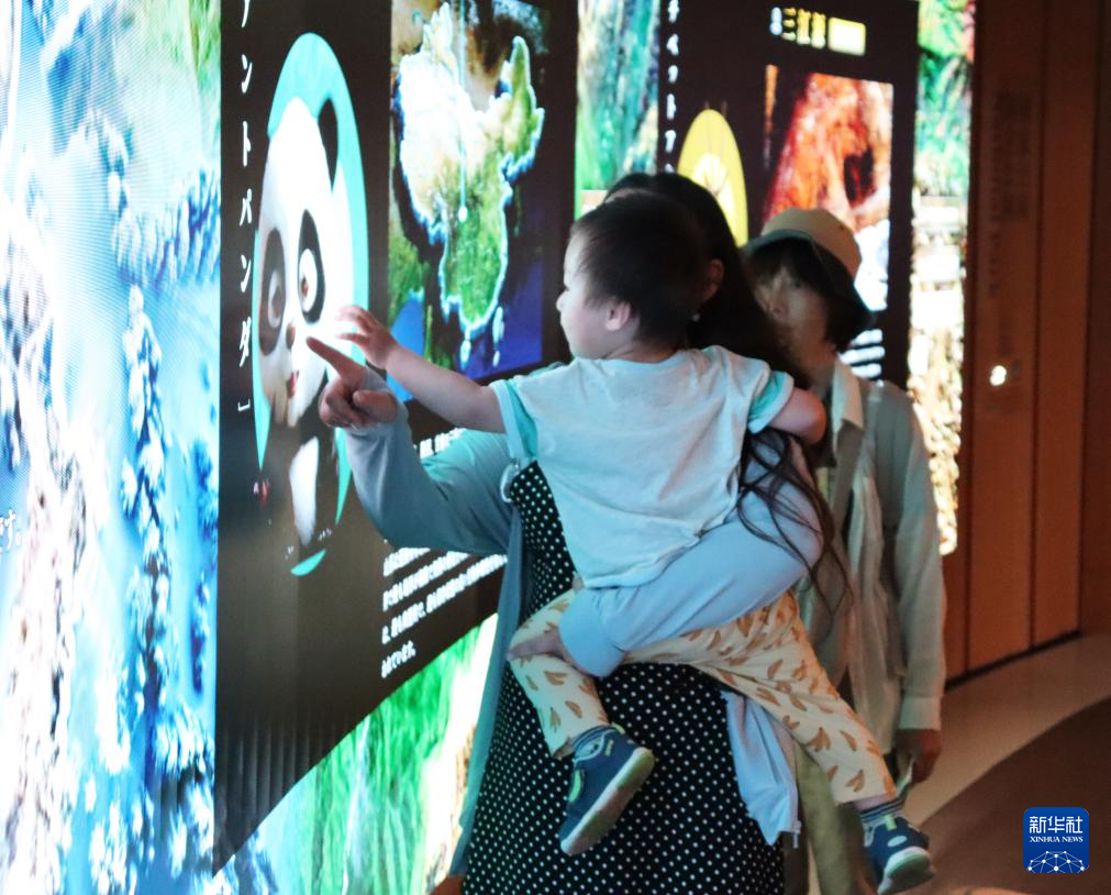 5月22日,在日本大阪,人们在大阪世博会中国馆内参观中国国家公园展区。新华社记者 杨光 摄