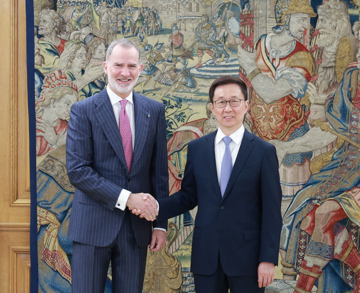 会见费利佩六世时,韩正转达习近平主席对费利佩六世国王的亲切问候,赞赏西班牙王室长期以来积极支持中西关系发展。韩正表示,中方愿同西班牙进一步加强在新能源、农食产品、电动汽车、数字经济、人文交流等领域合作。中国和西班牙在很多重大国际问题上理念相近,是捍卫多边主义、维护自由贸易规则秩序以及推动开放合作、完善全球治理的重要积极力量。中方愿同西班牙和欧方一道,共同维护以联合国为核心的国际体系,为世界和平稳定与发展作出贡献。