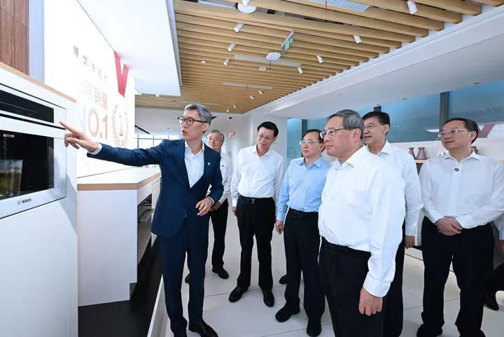 6月16日至18日,中共中央政治局常委、国务院总理李强在江苏调研。这是6月17日,李强在南京博西家用电器(中国)投资有限公司,了解企业技术研发和市场拓展等情况。新华社记者 饶爱民 摄