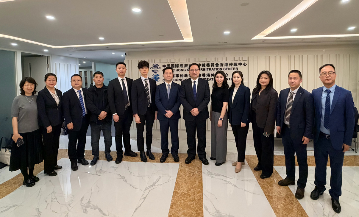 2025年12月2日下午,江苏省贸促会会长王善华先生率当地知名企业和律所代表一行到访中国国际经济贸易仲裁委员会(“贸仲”)香港仲裁中心。贸仲香港仲裁中心秘书长助理陶羿女士和法律顾问区锦涛先生接待并与之进行座谈交流。