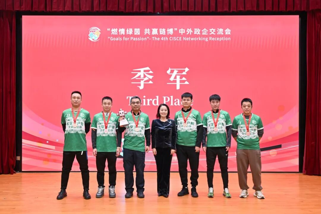 在本届邀请赛闭幕之际, 举办“燃情绿茵 共赢链博”中外政企交流会, 会长任鸿斌出席并致辞, 副会长李兴乾、聂文慧,阿根廷驻华大使马致远,以及中国有关部委、外国驻华使馆和商协会、港澳地区有关商协会、中外企业等240余名代表出席。