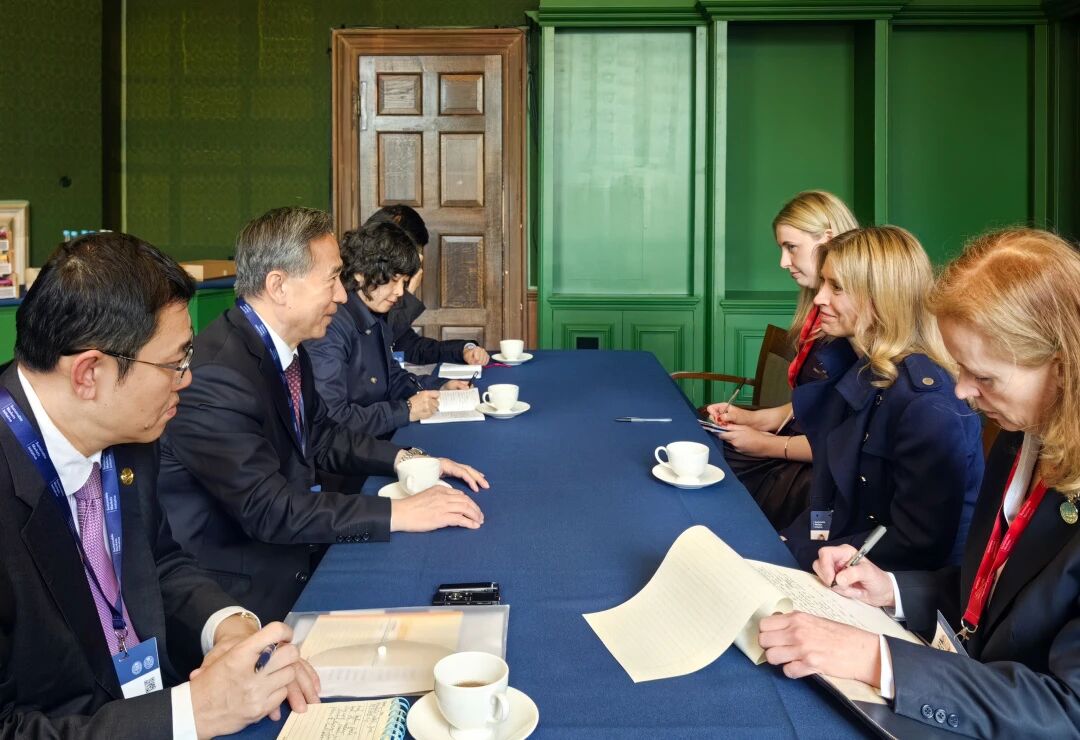 代表团积极宣介全国两会精神,强调愿与英方一道,把握中国“十五五”规划、加快经济社会全面绿色转型等带来的宝贵机遇,欢迎英国企业参加第四届链博会。查尔斯三世国王积极评价 成立的 “可持续市场倡议”中国理事会所做工作,鼓励中国理事会加快发展、增员扩容,取得更多合作成果。