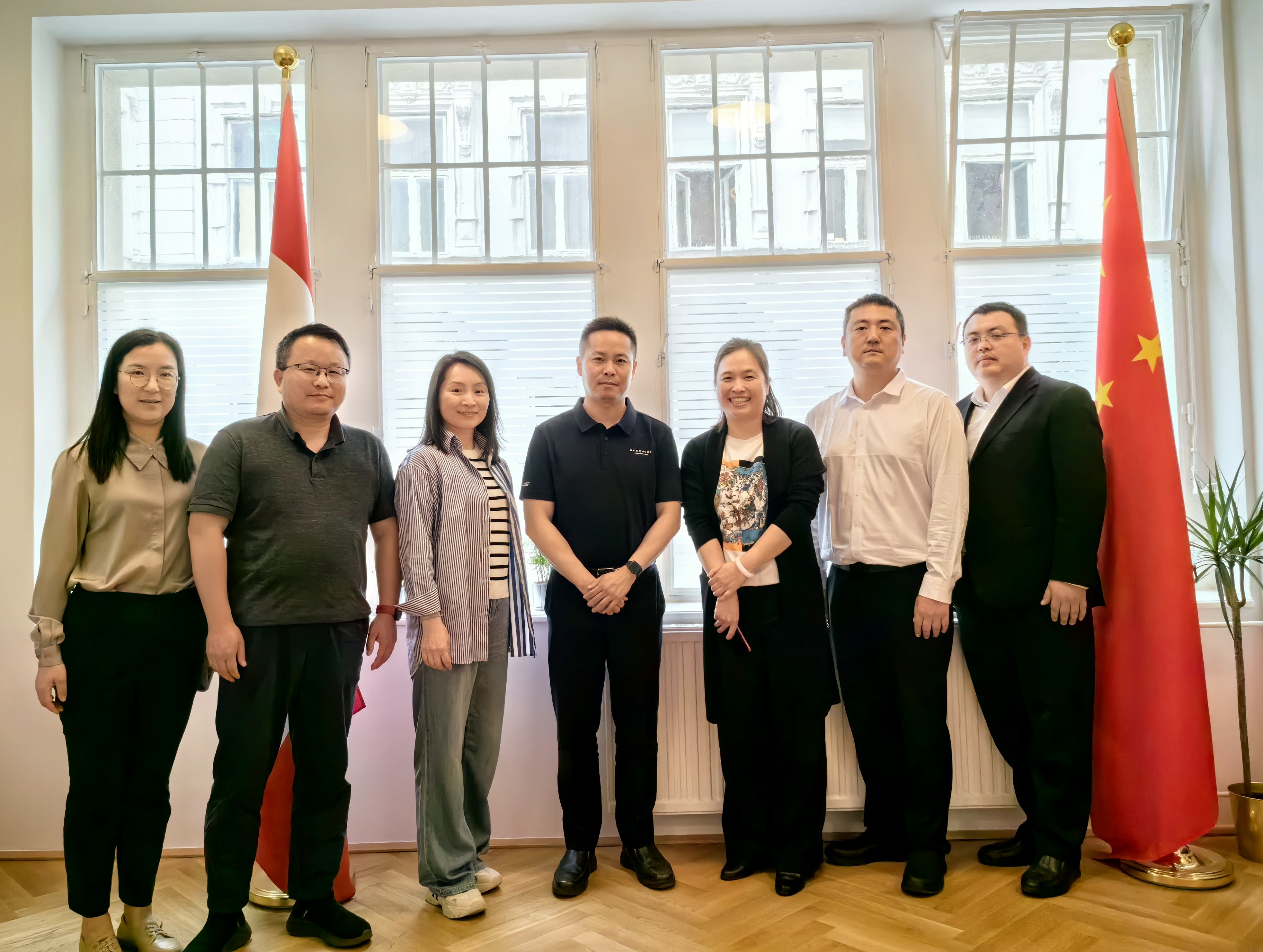 2024年6月5日,江苏省太仓市人民政府副市长张展率市商务局、招商局、资规局及高新区招商局等一行6人到访我处。张展副市长介绍了太仓市经济社会发展现状和太仓市德语区企业相关情况,希望通过我处进一步加强与奥地利工商界的联系和务实合作;曹晶副代表向代表团介绍了我处主要职能和近期工作,重点推介了第二届中国国际供应链促进博览会,并就加强太仓市工商界与奥地利联系、太仓市德语区企业参与链博会等话题进行了深入交流。