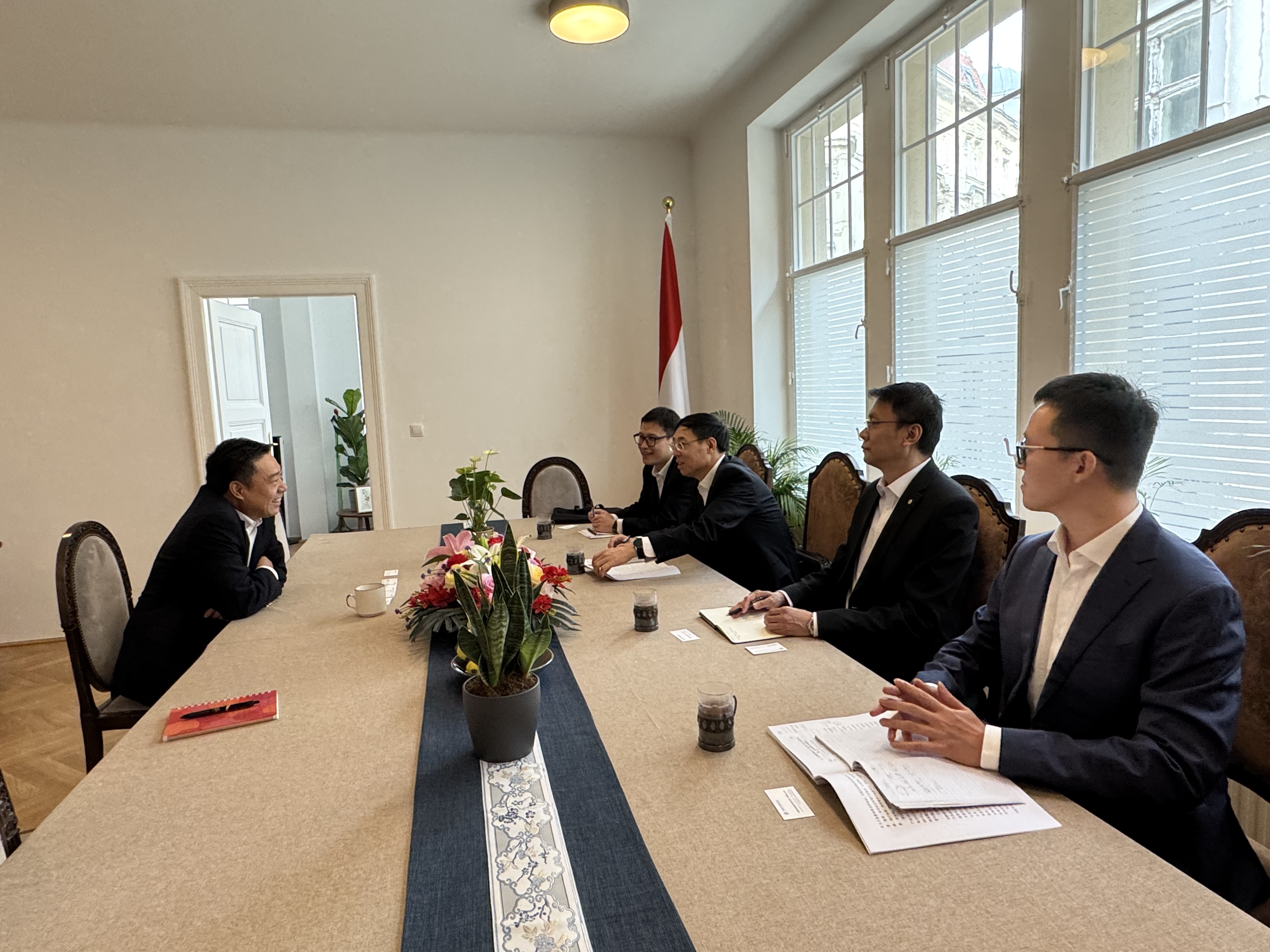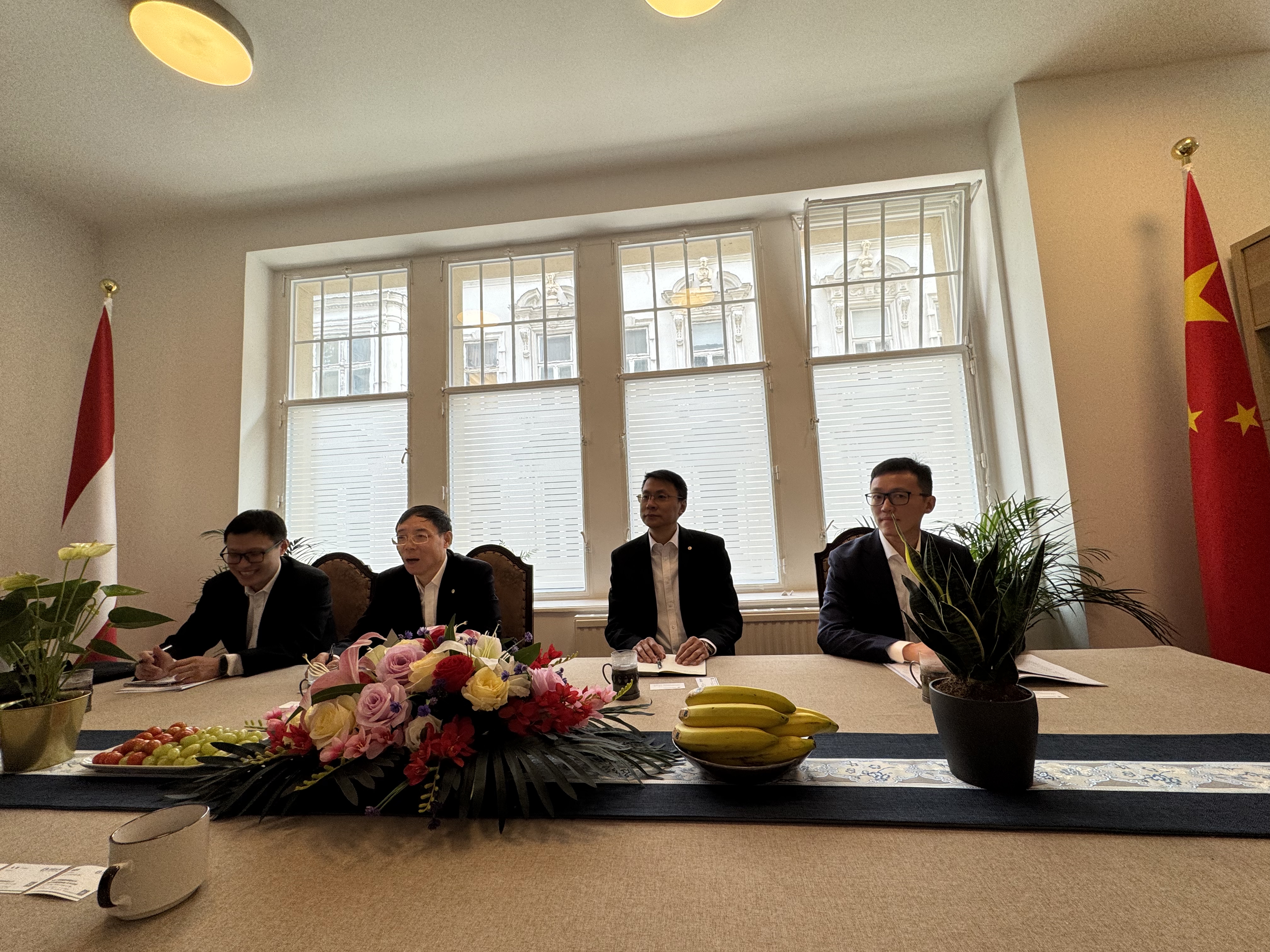 朱捷副总经理介绍了太平保险集团的发展历史、近期工作和海外业务情况;刘振华总代表介绍了 在促进中奥两国关系过程中发挥的独特作用、奥地利经济社会发展和在奥中资企业情况,并对第二届链博会进行了推介。双方还就中欧经贸关系前景、加强后续合作进行了交流和探讨。