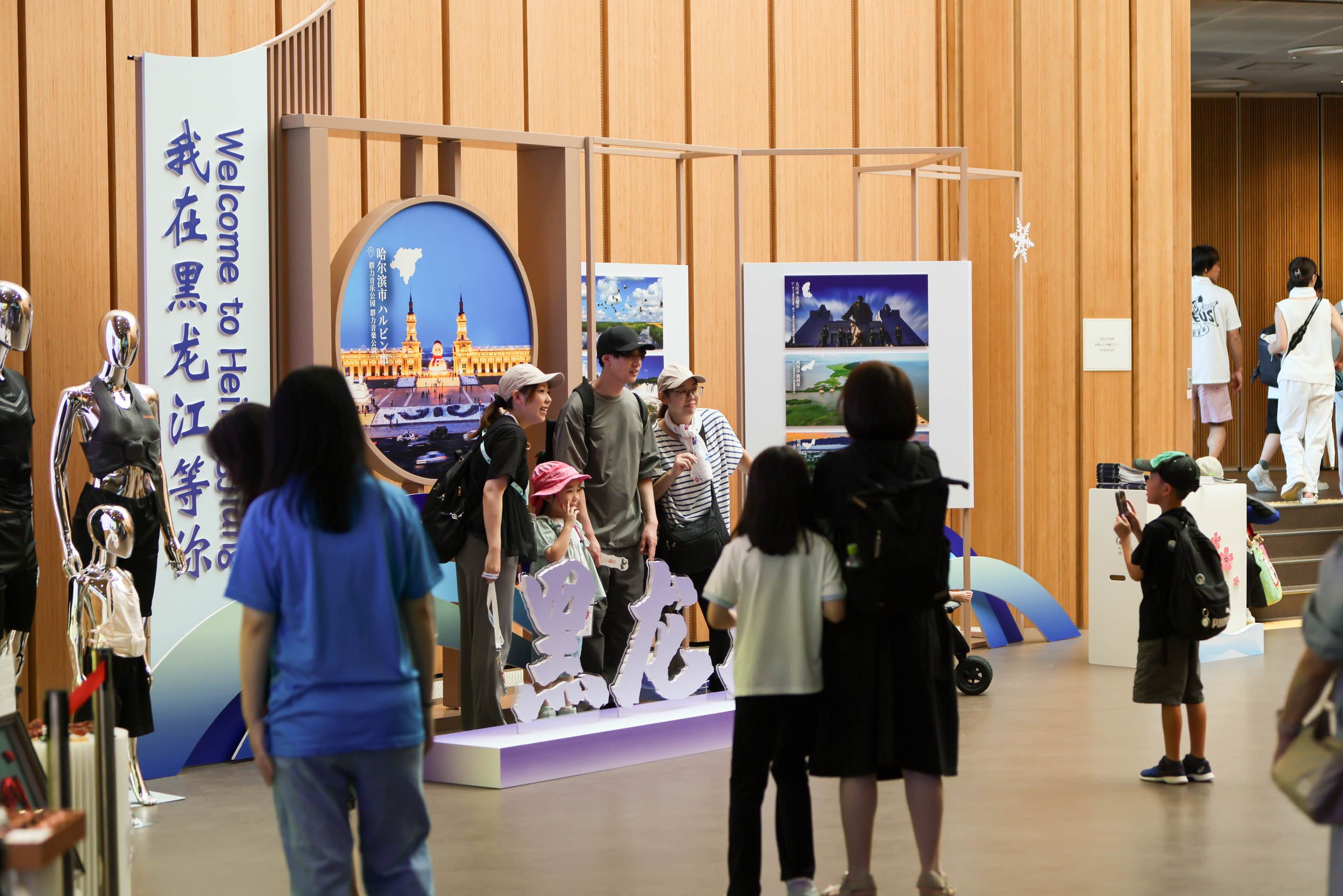 展览展示环节亮点十足,近百种精选展品构成了一幅立体生动的“龙江画卷”。水下环境监测机器人深入水域精准探测生态数据,为水资源管理提供强大技术支撑;智能心电衣打破健康监测的时空限制,诠释“健康中国”的民生温度;自然采光窗帘以科技调节光影,践行绿色低碳的发展理念,一系列科技创新成果彰显着龙江在智能制造、健康科技等领域的前沿探索。北沉香工艺品纹理独特、香气醇厚;冰花瓷晶莹剔透,宛如北国冰雪凝结而成的艺术品;满绣龙袍则以精湛的刺绣技艺再现满族文化的辉煌,以一针一线的坚守与创新,诉说非遗传承中蕴含的文化自信。“黑土优品”“九珍十八品”的精彩亮相,让世界感受到寒地黑土孕育出的卓越品质。这些展品共同勾勒出龙江在生态、文化、产业等领域的独特优势,展示了高质量发展的多元活力。