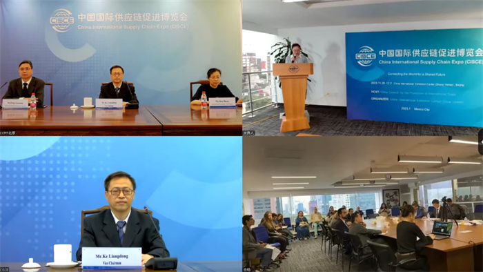 首届中国国际供应链促进博览会(链博会)墨西哥路演活动于墨西哥时间7月10日下午在 驻墨西哥代表处办公室以线上线下相结合的方式举行。该活动由 驻墨西哥代表处主办。来自中国驻墨西哥使馆、墨西哥联邦政府、各商协会、当地媒体及中墨企业等代表近40人参加该活动。与会各界代表高度评价本次路演,并表示将全力协助邀请会员企业和合作伙伴积极参与链博会。