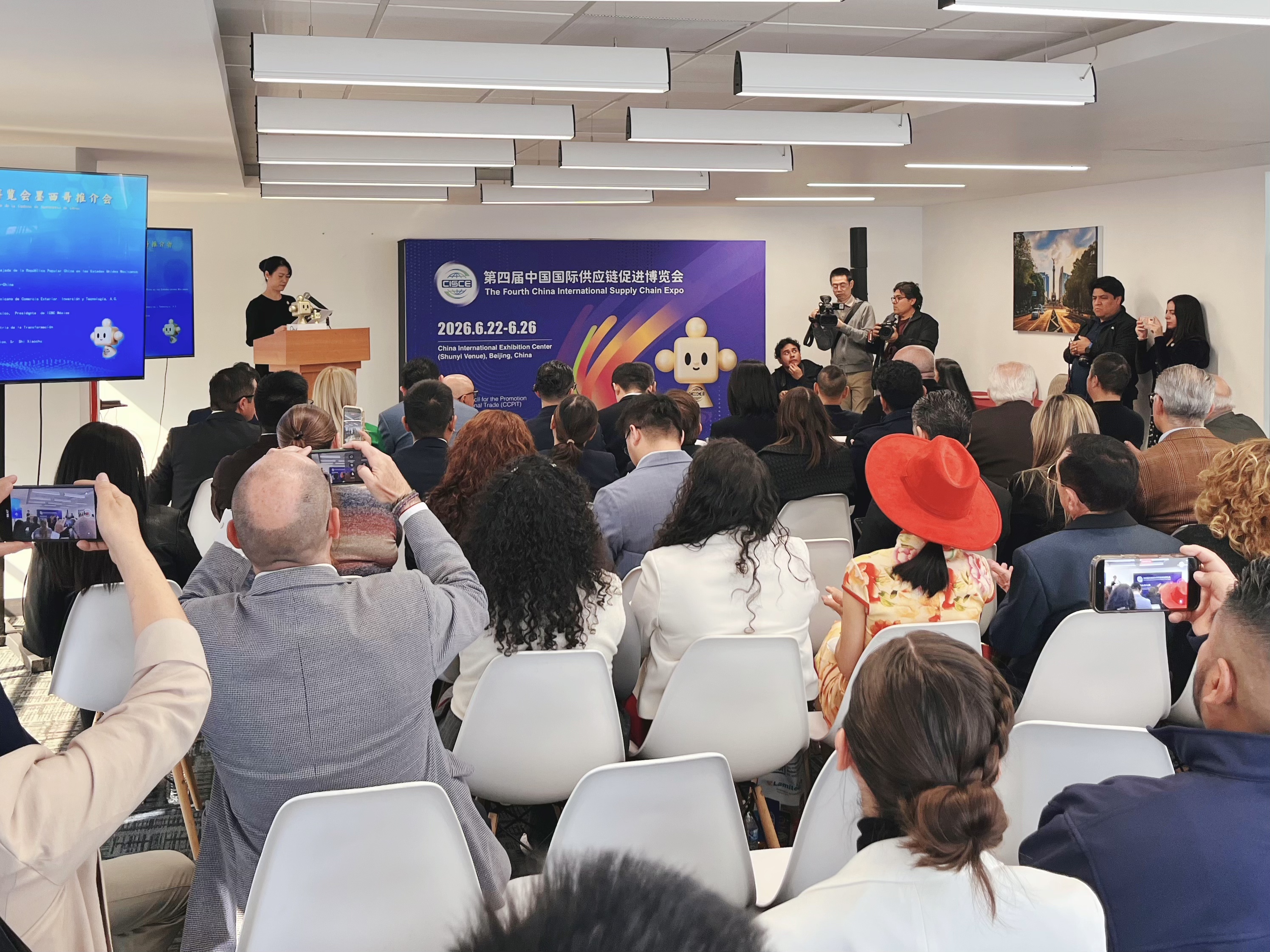 当地时间2月9日,第四届中国国际供应链促进博览会(以下简称“链博会”)推介会在墨西哥城举行。驻墨西哥大使陈道江出席会议并致辞,此外还有驻墨西哥使馆经商处杨鹏参赞,墨西哥中国商业科技商会主席比森特·罗克涅尼,墨西哥外贸、投资和技术委员会墨中分委会主席拉斐尔·巴尔德斯先生,墨西哥中资企业协会会长、中国工商银行(墨西哥)有限公司总经理周盛誉等100余名中墨两国政商界代表参加会议。