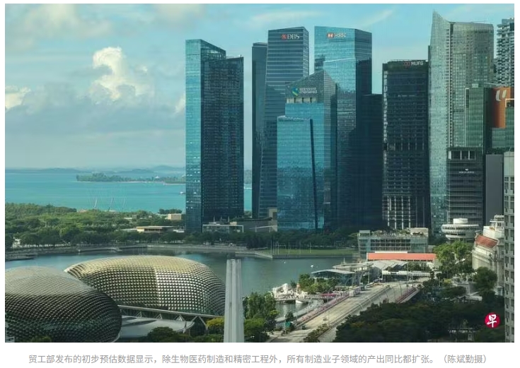 新加坡第二季制造业国内生产总值(GDP)同比增长0.5%,扭转了上一季度1.7%的萎缩趋势。经济师认为,以电子业为首的制造业复苏,将为全年经济增长带来支持。贸工部星期五(7月12日)发布的初步预估数据显示,除生物医药制造和精密工程外,所有制造业子领域的产出同比都扩张。环比来看,经季节性调整后环比增长0.6%,上一季环比收缩5.3%。