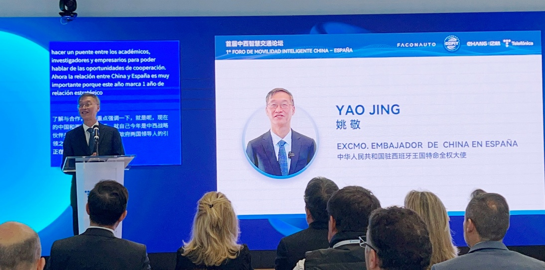驻西班牙代表处首席代表翟利波、西班牙汽车经销商协会联合会主席玛尔塔·布拉兹克斯、亿航智能欧洲及拉丁美洲首席运营官向静、西班牙电信马德里大区总监哈维尔·卡斯特罗、中国智能交通协会秘书长杨颖(视频)等嘉宾在活动中致辞。